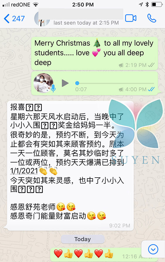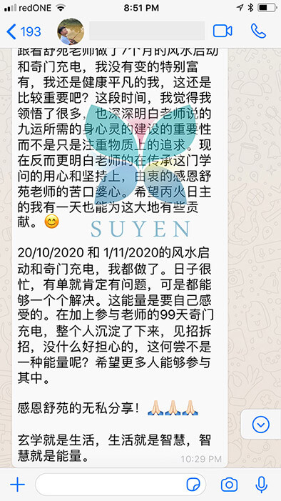 在过去一年多的学习会,已有超过10809名学员和他们的家人在通过应用舒苑老师独创的🔥风水启动和🔥奇门充电后,7天內直接得到很好的效果和收获。