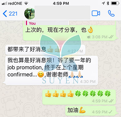 Master Suyen is a very compassionate teacher. I like her very much. I've learnt a lot from her and I would like to say, thank you so much Master Suyan! Without realising, a year has passed, she always gives me lots of positive energy! Master Suyen, we love you!